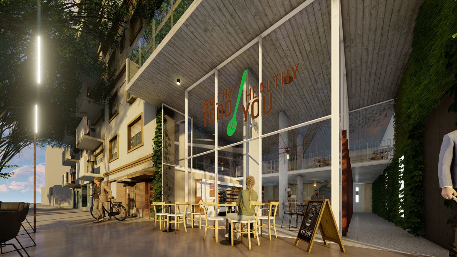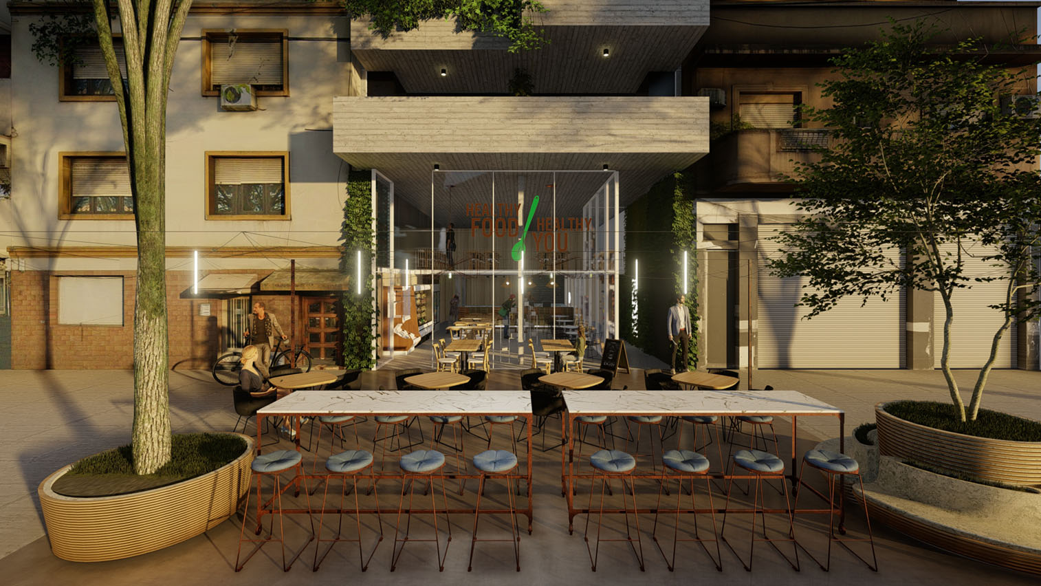 En un lote singular, dentro de una manzana irregular, el edificio encuentra su identidad. La Avenida de los Incas le imprime carácter urbano, y la propuesta responde con una escala que combina lo residencial con un frente comercial activo.