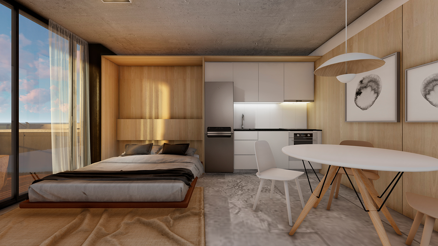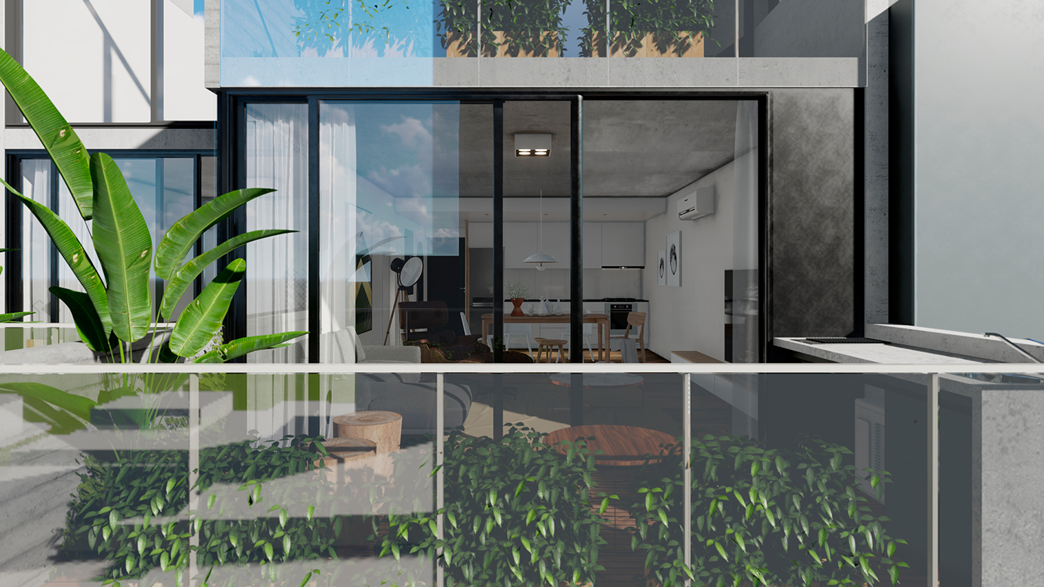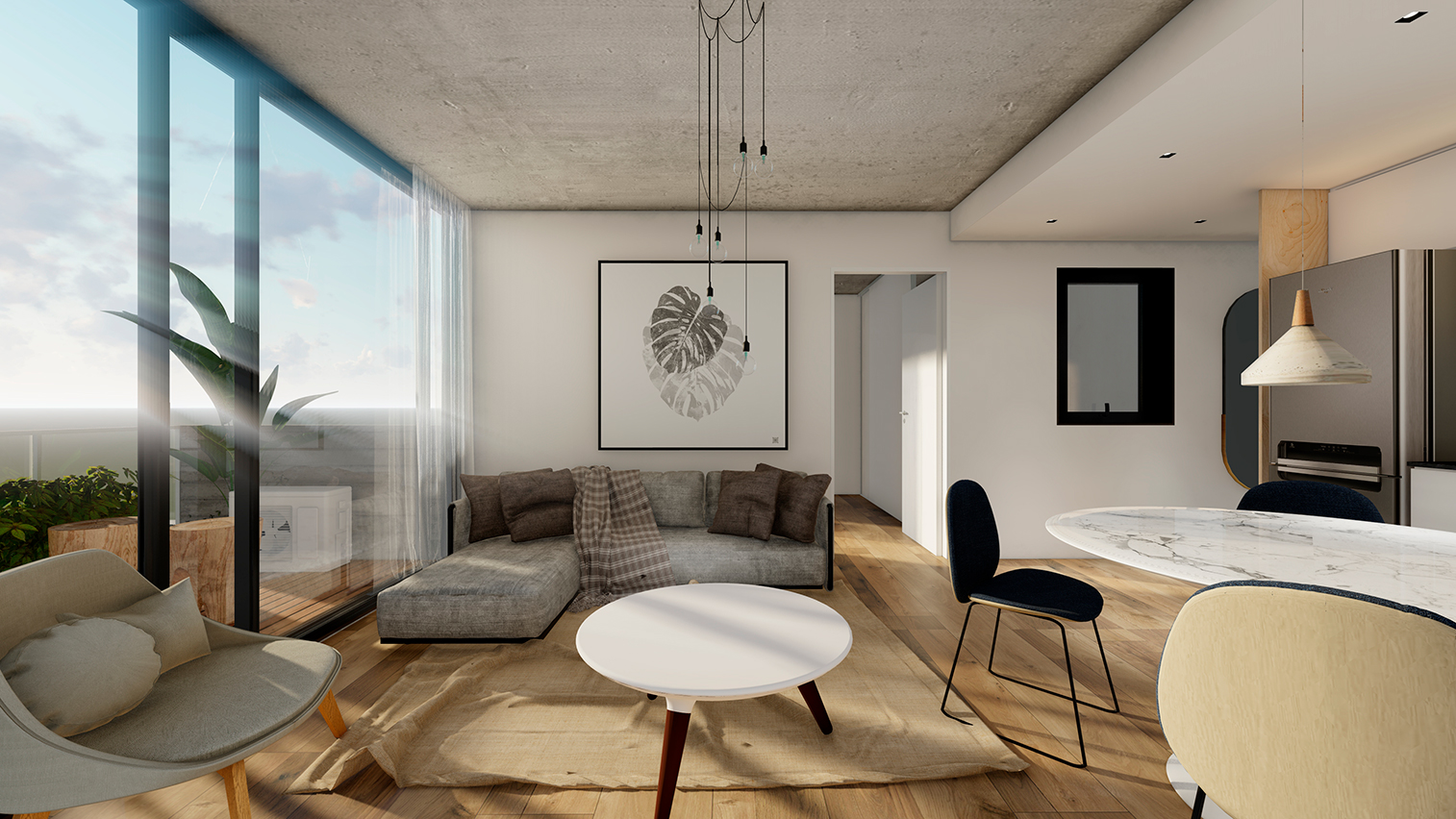 Hormigón visto, planos claros y terminaciones de calidad definen su carácter. El edificio se completa con amenities que amplifican la experiencia: espacios comunes que extienden el habitar y refuerzan la idea de comunidad urbana.