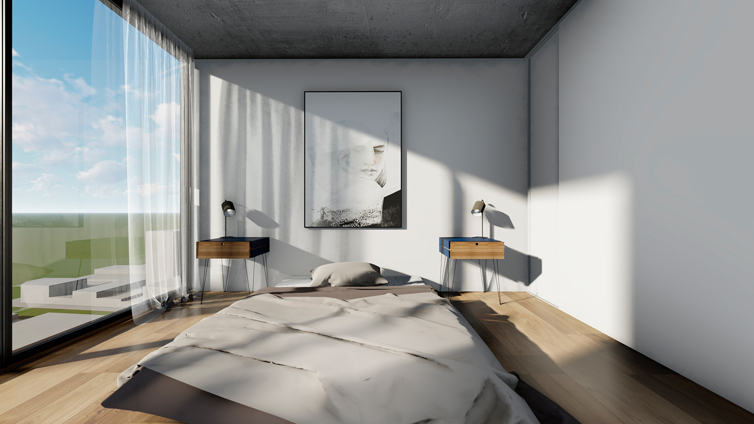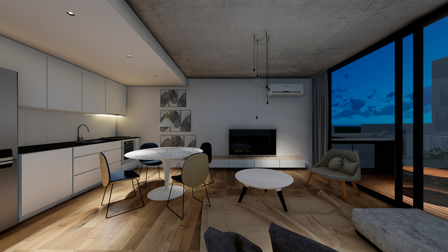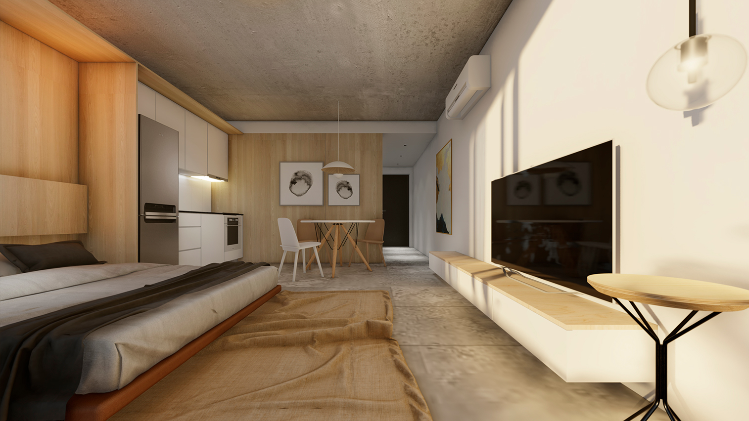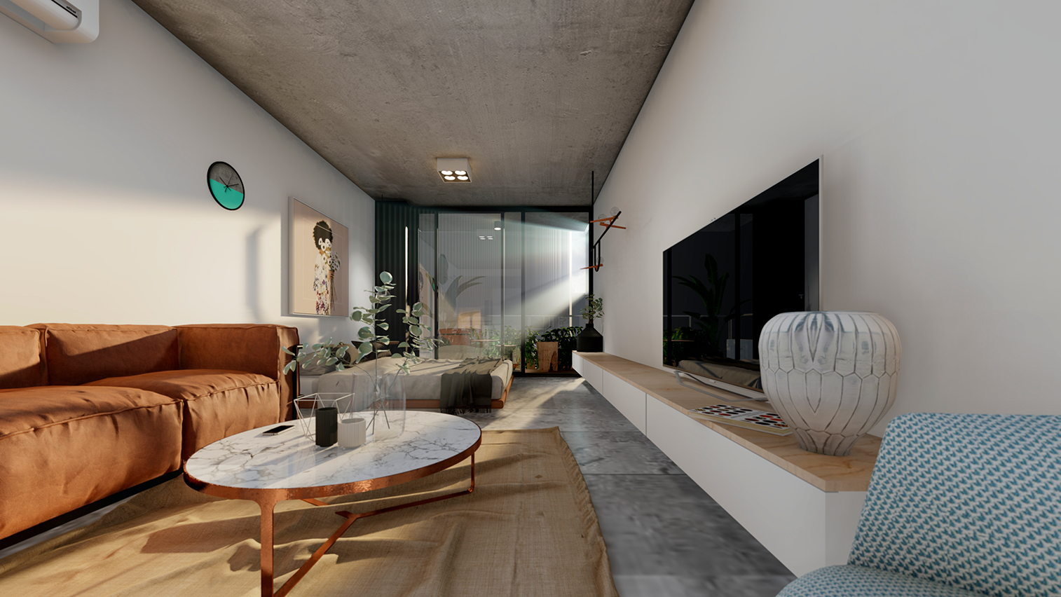 Hormigón visto, planos claros y terminaciones de calidad definen su carácter. El edificio se completa con amenities que amplifican la experiencia: espacios comunes que extienden el habitar y refuerzan la idea de comunidad urbana.