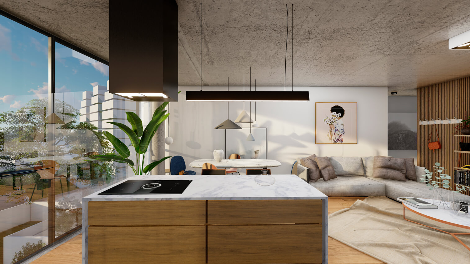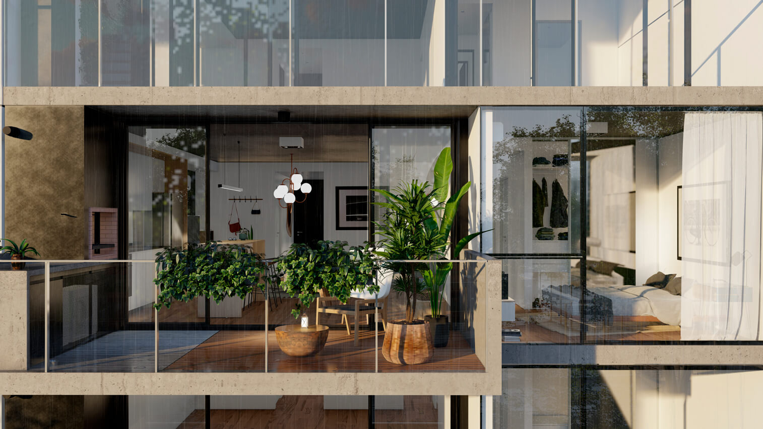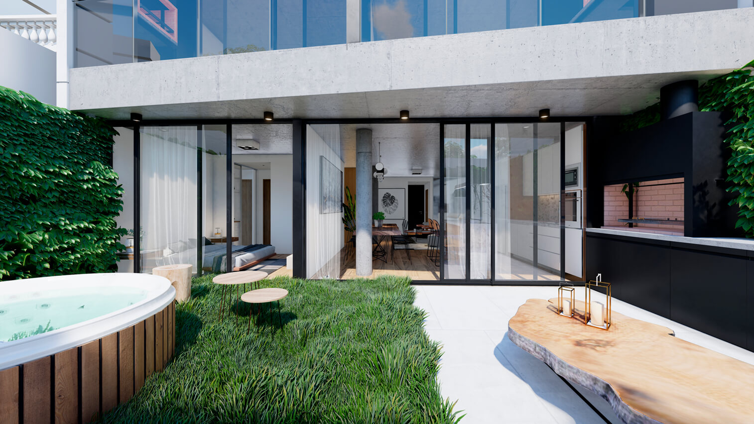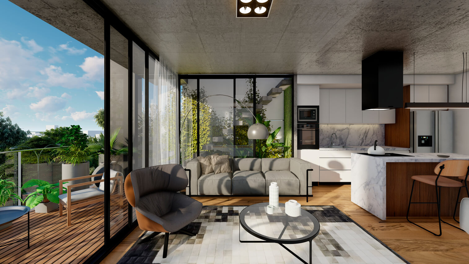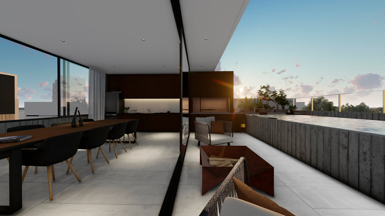 Además de las viviendas, Costa Rica 4073 incorpora áreas comunes con terrazas, SUM, parquización y piscinas privadas. Lugares de encuentro que equilibran lo privado con lo colectivo y refuerzan la experiencia de habitar en comunidad.